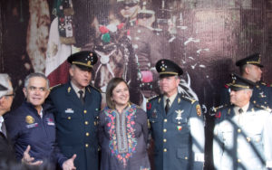 Exposición en el Metro. Junto a Miguel Ángel Mancera, entonces jefe de gobierno de la CDMX; Xóchitl Gálvez, en ese tiempo delegada en Miguel Hidalgo, y Jorge Gaviño, director general del Sistema de Transporte Colectivo Metro, preside 21 de noviembre de 2017 la inauguración de una exhibición en el metro Colegio Militar de imágenes que reflejan el trabajo de los cuerpos militares para brindar servicio al país.