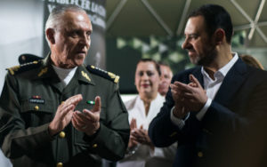 Pasión militar. En Zacatecas, junto al gobernador del estado, Alejandro Tello Cristerna, inaugura la exposición Fuerzas armadas… pasión por servir a México, en la Unidad Deportiva Benito Juárez en la capital del estado, 28 de febrero de 2018.