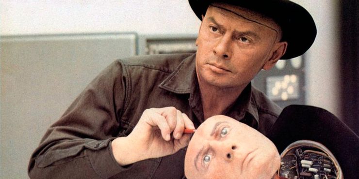 En homenaje a su papel en Los siete magníficos Yul Brynner una vez más interpretó a un pistolero vestido de negro en Westworld, sobre un parque temático futurista donde la fantasía de todos los visitantes se puede cumplir interactuando con androides en un entorno del viejo oeste. Cuando un visitante choca accidentalmente con The Gunslinger, lo caza metódicamente a través de la frontera y el resto de los parques temáticos.