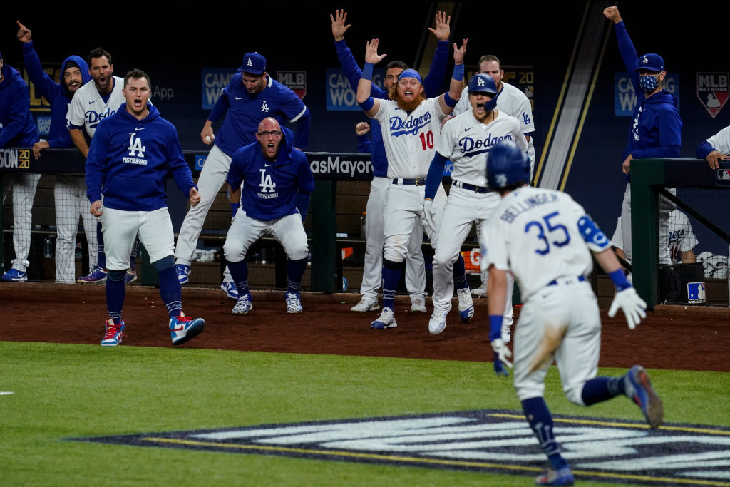 Los Dodgers de Los Ángeles empezaron a celebrar cuando Cody Bellinger envió la pelota hacia lo más profundo de la noche en Texas. Bellinger lanzó el bate a un lado y trotó hacia la línea de primera base.