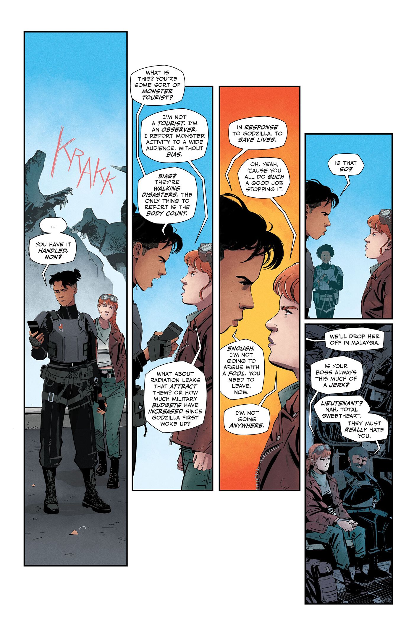 En el Especial del día de San Valentín de Godzilla – escrito por Zoe Tunnell con arte de Sebastian Piriz y Rebecca Nalty – dos humanos, la reportera Piper Simmons y el agente de las Fuerzas de Defensa de la Tierra, el teniente Sauveterre. Se siguen encontrando a lo largo de cinco años, mientras cada uno sigue a Godzilla a su manera.