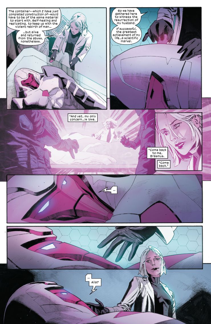 En X-Men # 20 por Hickman, Francesco Mobili, Sunny Gho, Clayton Cowles y Tom Muller, la científica de Orchis, la Dra. Alia Gregor, logra poner a Nimrod en línea, algo que Xavier se ha propuesto prevenir. Los X-Men habían lanzado previamente un asalto a Orchis para destruir sus planes de crear Nimrod, un ataque que mató al esposo de Gregor, Erasmus Mendel. Afligido por el dolor, Gregor estaba decidido a vengarse de los mutantes y, al crear a Nimrod, también se las arregla para traer de vuelta a su esposo. Ella revela que antes de morir, Mendel se sometió a un procedimiento experimental donde se conservaron sus recuerdos. Estos recuerdos se han implantado en Nimrod, lo que le permite renacer en el cuerpo del superpoderoso Sentinel. Tan pronto como se activa Nimrod, reconoce a su esposa, dejando en claro que Mendel está realmente vivo nuevamente en este nuevo cuerpo. Esto tiene similitudes inquietantes con la forma en que los mutantes resucitan a sus muertos.