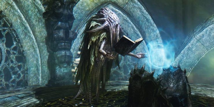 Las ruinas dwemer también suelen ser el hogar de los falmer. Obligados a someterse por los dwemer, los falmer se adaptaron gradualmente a un estilo de vida subterráneo en las mazmorras más profundas de Skyrim. Lo que hace que los Falmer sean tan inquietantes no es solo su apariencia, que ya los convertiría en uno de los de Skyrim enemigos más aterradores, ya que imita el de otros Mer lo suficientemente cerca como para hacer que sus rasgos faciales casi irreconocibles sean mucho más aterradores de ver, pero también el conocimiento de su historia. Un antiguo Elfo de las Nieves, los ancestros de los Falmer, incluso pueden ser encontrados y hablados en Skyrimlo que permite al jugador ver hasta qué punto los Falmer han caído en la locura gracias a la influencia de los Dwemer.