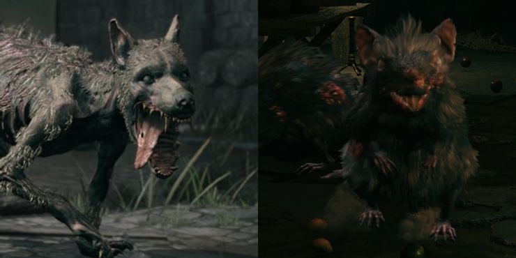 Un enemigo muy similar al Rotten Stray es la rata simple pero peligrosa. Como otro enemigo frecuente en varios títulos de FromSoftware, la Rata es una criatura molesta que también aparece en manadas. La diferencia entre Anillo de EldenRotten Stray dog and Rats, sin embargo, es que las ratas tienen una velocidad de movimiento mucho más lenta y una velocidad de ataque significativamente más rápida. El ataque más molesto de la Rata es un golpe rápido que apenas se telegrafia con anticipación y casi garantiza que romperá el equilibrio, lo que lleva a que el jugador quede aturdido repetidamente por una rápida combinación de mordiscos de todo el paquete. Afortunadamente, estas ratas no infligen veneno como las de los juegos anteriores, pero siguen siendo increíblemente tediosas de tratar.