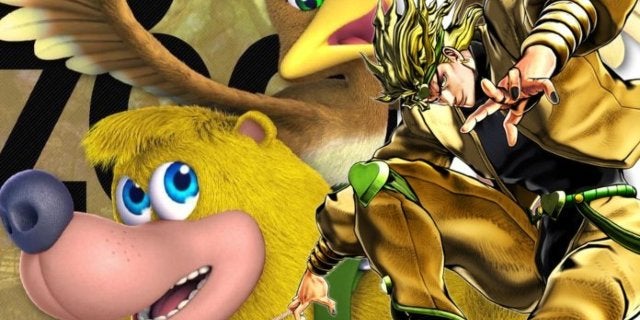 Como señala @ HPredeus2, los esquemas de color amarillo y morado y negro de Banjo-Kazooie hacen que el dúo famoso muera por famosos Stardust Cruzados personajes Jotaro Kujo y Dio Brando. Entonces, mientras los fanáticos ya estaban haciendo bromas sobre cómo Banjo estaba usando a Kazooie como un Stand en su conjunto de movimientos, ahora esos chistes se llevarán al siguiente nivel con Banjo pudiendo usar un Kazooie que se parece a Dio's The World o Jotaro's Star Platino.