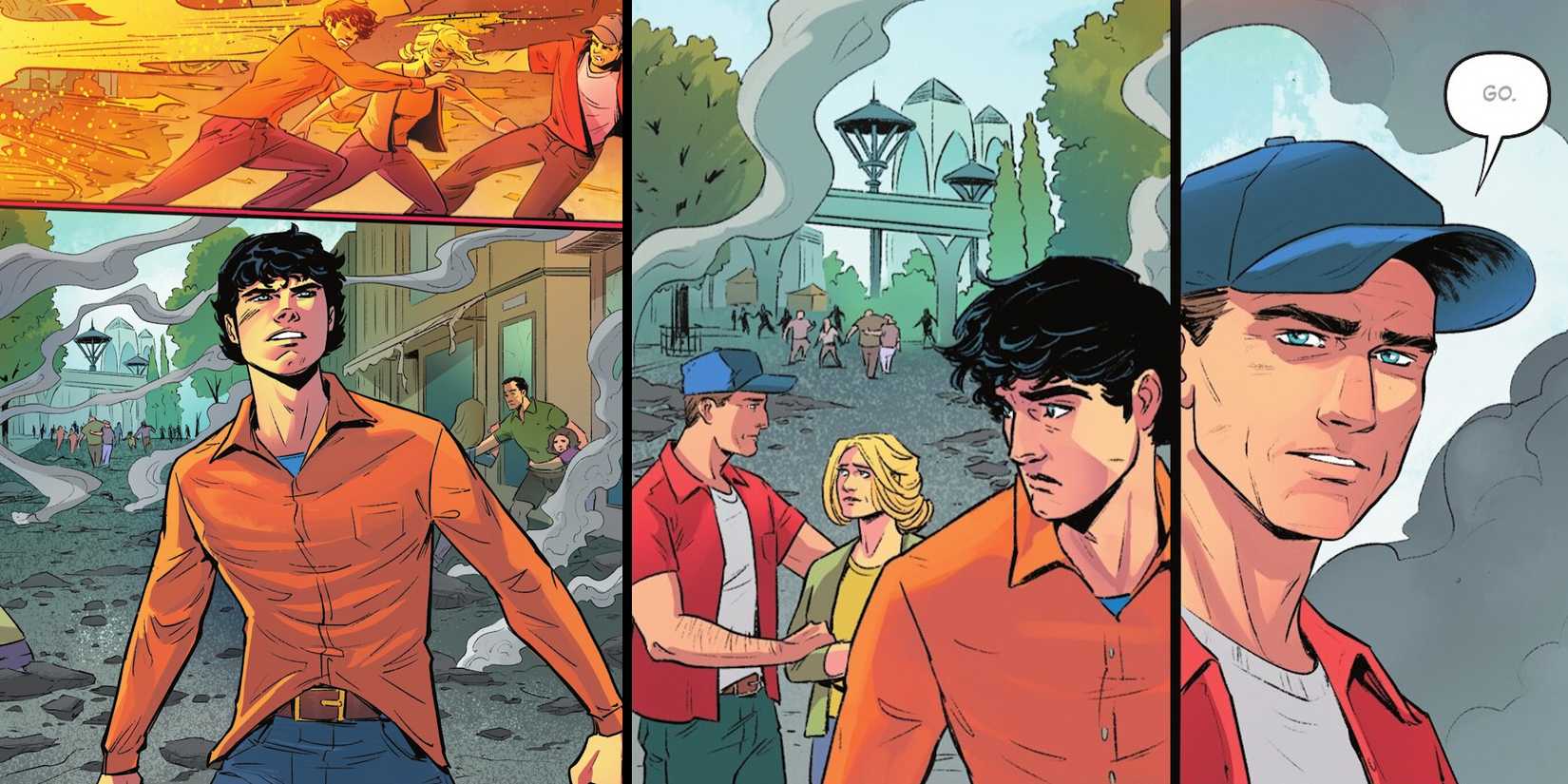 El nuevo origen comienza oficialmente en Cómics de acción #1087 por Mark Waid, Skylar Patridge e Ivan Plascencia, aproximadamente al mismo tiempo en la vida de Clark como Hombre de aceropresentándolo como un joven ansioso por encontrar su propio lugar en el mundo. Y aunque el cómic de Superman obviamente puede ser más alegre que la película, Jonathan se hace eco de las mismas preocupaciones sobre el día en que su hijo se revela al mundo.