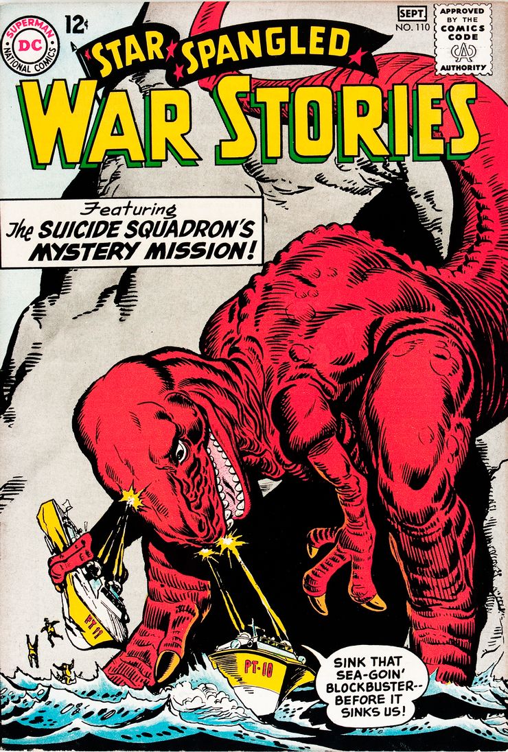 En 1963, se introduciría un Escuadrón Suicida diferente en Historias de guerra con lentejuelas de estrellas # 110 en una historia llamadaSuicide Squadron: Tunnel of Terror “, escrita de nuevo por Robert Kanigher y dibujada a lápiz por Ross Andru. Esta historia ambientada en la Segunda Guerra Mundial presentaba una unidad con personajes sin nombre que se encontraban esencialmente en la trama de King Kong, en una misteriosa isla perdida con dinosaurios y un simio blanco gigante. Los cuentos de Suicide Squad que aparecieron en Historias de guerra con estrellas estaban más en línea con otros cómics del título, siendo más un concepto de antología con diferentes miembros que habitan el grupo en cada historia. El Escuadrón Suicida de la Segunda Guerra Mundial luchó contra muchos dinosaurios y algunos robots. A este concepto le fue un poco mejor que al anterior y apareció en once números de Historias de guerra con estrellas.