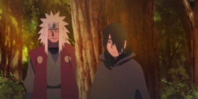 - Jiraiya pregunta por Sasuke y cómo resulta su futuro. Si Sasuke está con Boruto y regresa al pasado para ayudar a Naruto, Jiraiya supondrá rápidamente que Sasuke y Naruto eventualmente se reconcilian y se mantienen cerca. Eso sería poderoso para Jiraiya y su orgullo en la amistad de Naruto y Sasuke también podría conmover a Sasuke.