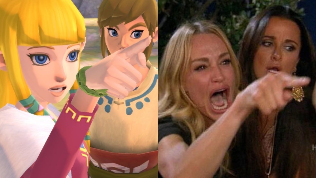Los fanáticos comenzaron a darse cuenta de este extraño suceso en los últimos días cuando las imágenes de comparación muestran una foto fija de La leyenda de la espada zelda hacia el cielo comenzó a aparecer junto al popular meme “Mujer gritándole al gato”. Al ver los dos uno al lado del otro, es bastante fácil ver cómo coinciden. La versión de Espada hacia el cielo incluso ve a Link parado en el fondo detrás de Zelda luciendo preocupado, muy parecido al meme de origen. Después de que se señaló la similitud, muchos comenzaron a usar la imagen para, por supuesto, hacer nuevos memes en este mismo estilo con Zelda.