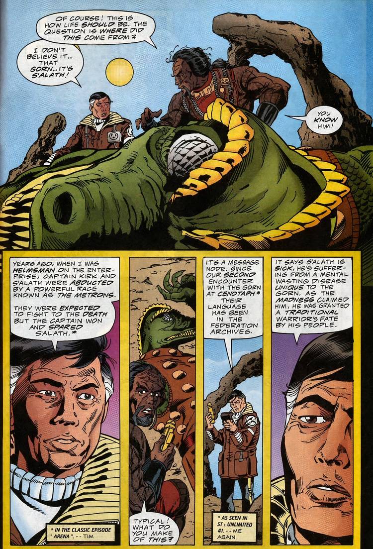 El clásico Trek Raramente dio seguimiento a episodios clave, y “Arena” fue uno de ellos. El Gorn ha sido un popular Trek Race desde su introducción, pero solo ha hecho un escaso número de apariciones. Si bien la falta de episodios centrados en Gorn puede deberse a las limitaciones del presupuesto y otros factores logísticos, los cómics no tienen tales colgadores. Abnett, Lanning y Morgan aprovechan esto, dando a los fanáticos el capítulo final en la rivalidad de Kirk con el Gorn. Lejos de restar valor al original, funciona para mejorarlo, dándole un impacto aún más emocional.