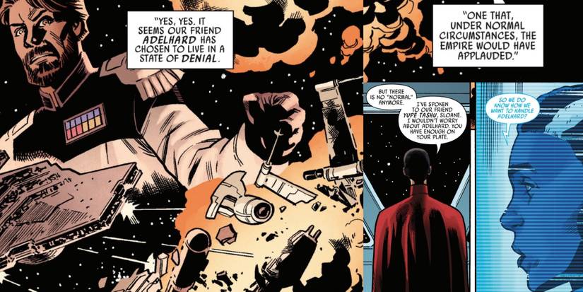 ¿Qué hace? Aumento de la insurgencia tan fascinante es cómo sus eventos se han entrelazado con lo que ya se ha establecido dentro de este guerra de las galaxias período. Esto es particularmente cierto con el Gobernador Adelhard y su Bloqueo de Hierro que rodea el Sector Anoat. Gracias a Levantamiento de la insurgencia #2se revela que Adelhard no está alineado con los protocolos de Operación: Ceniza como el resto del Imperio.. Cuando Sloane y Rax discuten sus acciones, confirman que Adelhard vive en un estado de verdadera negación debido a su extrema lealtad, negándose a aceptar que el Imperio acaba de sufrir la mayor pérdida de toda su historia.
