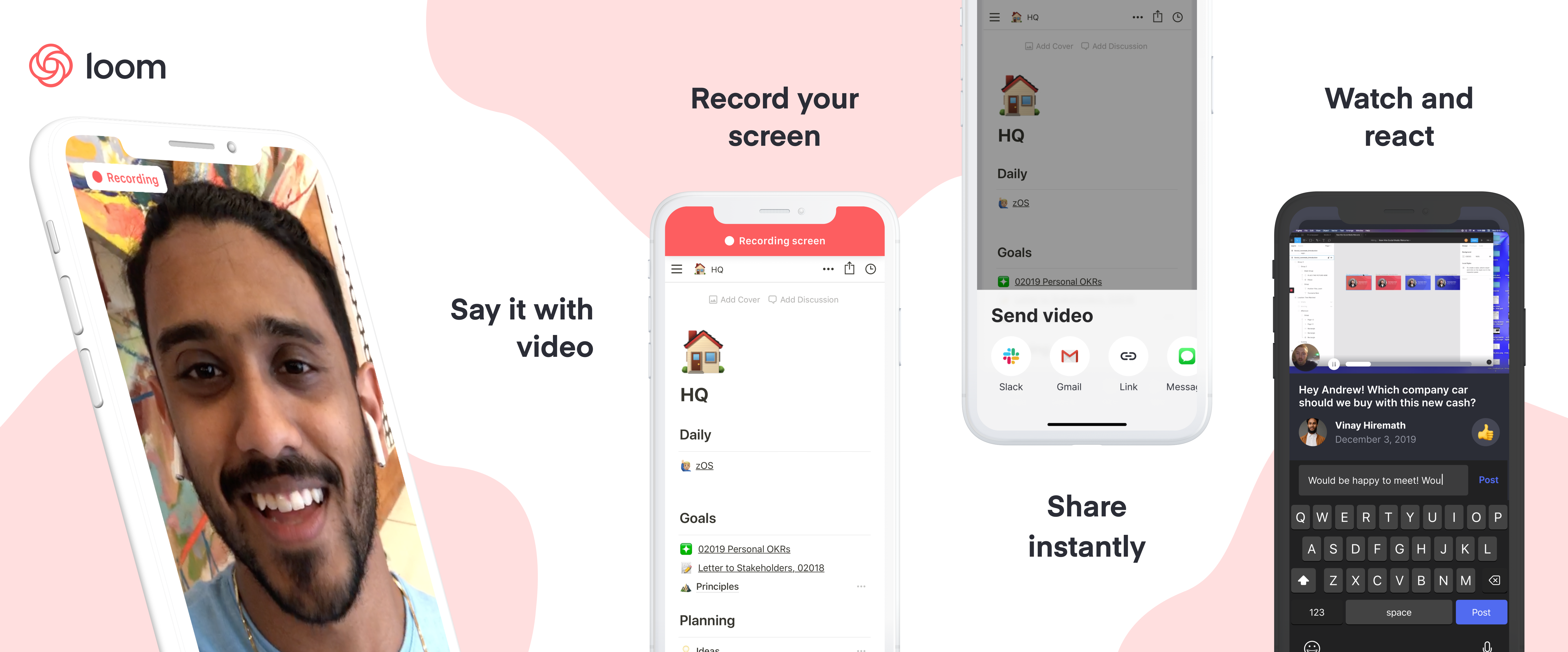 Loom también está preparando algunas de sus características más solicitadas. La startup lanzará una aplicación para iOS el próximo mes con Android en la primera mitad de 2020, mejorando su editor de video con desenfoque para ocultar su mal día y costuras para conectar múltiples tomas. Las nuevas opciones de marca ayudarán a que las presentaciones y presentaciones de ventas externas se vean bien. Lo que más me entusiasma es la transcripción, que también está programada para el primer semestre del próximo año a través de una asociación con otro proveedor, para que pueda hojear o buscar un Loom. A veces, incluso mirar a una velocidad 2X es demasiado lento.