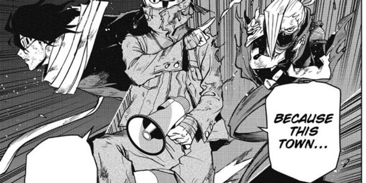 Finalmente, en el capítulo 120, Koichi puede obtener ayuda contra el gigante en llamas, una vez conocido como Six. Primero, obtiene un poco de apoyo moral ya que muchos de VigilantesLos personajes secundarios han aparecido para animarlo y ayudar a mantener al público a salvo, pero la mayoría de ellos no están realmente en condiciones de luchar, y ciertamente no contra un monstruo de llamas que es un kaiju en todo menos en el nombre. La única razón por la que Koichi aún puede luchar en este punto se debe a una aplicación particularmente inteligente de su peculiaridad, pero eso requiere una concentración que puede romperse fácilmente. Ha luchado valientemente, sin duda, pero incluso All Might tenía sus límites, y Koichi se está quedando sin trucos cuando una extraña fibra lo arranca del aire. Se revela que esta fibra, por supuesto, está siendo manipulada por Best Jeanist, el (en ese momento) héroe número 3, que finalmente llegó junto con Eraserhead (Aizawa), Edgeshot y el hermano mayor de Tenya Iida, el Ingenium original.