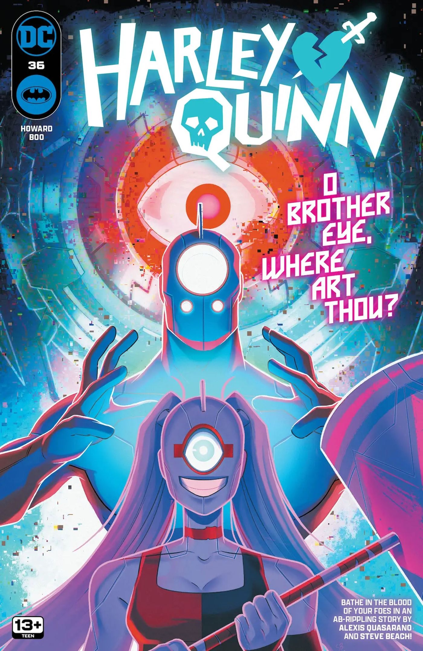 harley quinn El número 36 de Tini Howard y Sweeney Boo enfrenta a la Princesa Payaso titular contra nada menos que Brother Eye, el satélite malévolo creado por Batman para vigilar a la población metahumana del mundo. La venganza actual de Eye contra Harley Quinn se extiende por todo el multiverso, hasta que el villano finalmente se enfrenta a ella en Tierra-0.