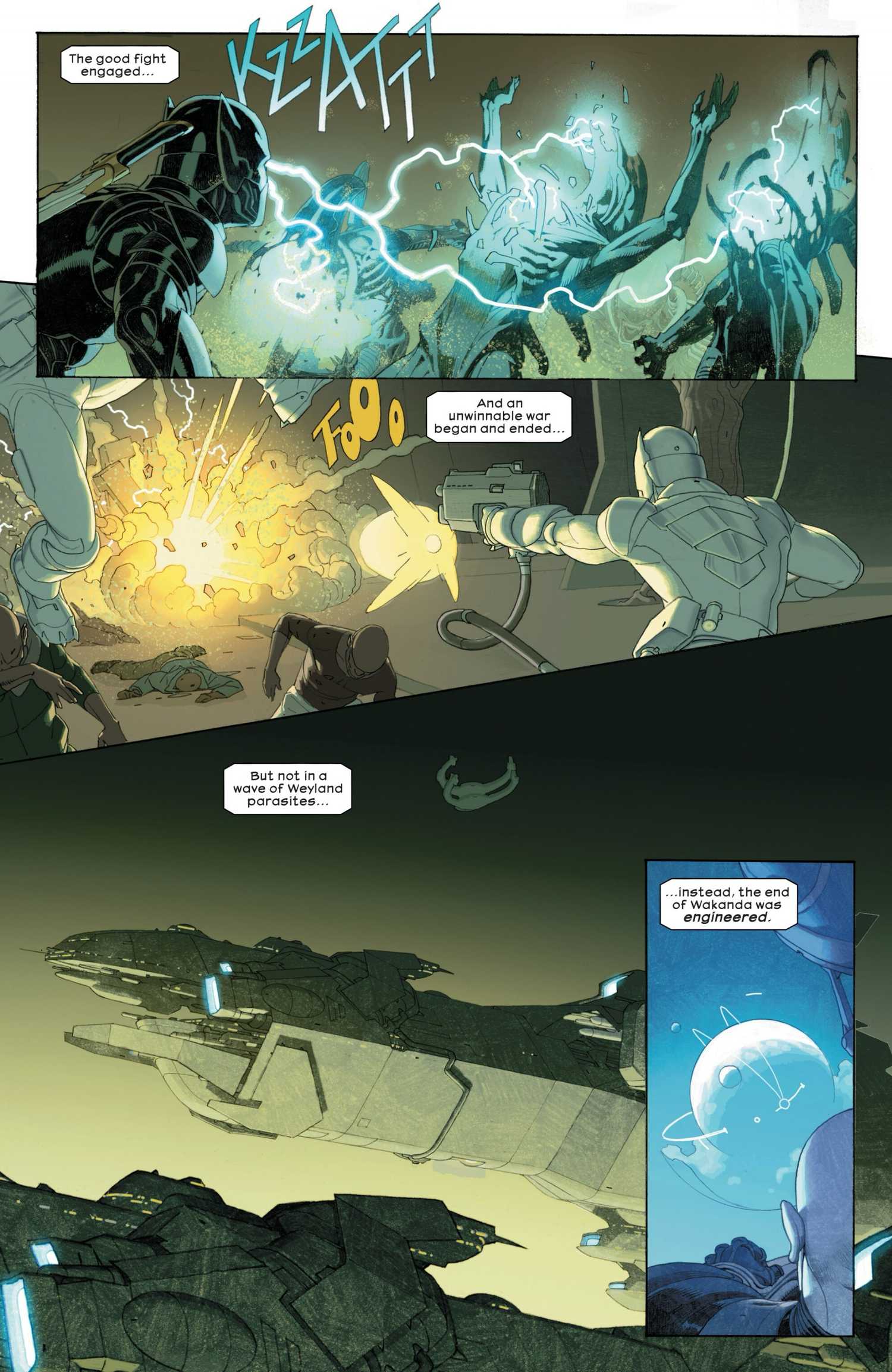 Trágicamente, el imperio intergaláctico de la capacidad de Wakanda para viajar rápidamente entre sus diversos planetas a través de Stargates llevó a su ruina acelerada. Una vez que se infectó un mundo, todo terminó para todos los demás a medida que la población de Xenomorfo creció rápidamente y se extendió por el imperio con facilidad. Tras el regreso de T’Challa al Imperio, solo quedaban dos mundos cuando una vez había habido casi 60.