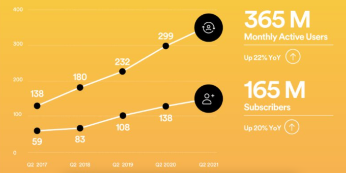 De los 365 millones de MAU de Spotify, 165 millones (alrededor del 42,5%) son suscriptores de pago, lo que aún está mucho más allá de su próximo mayor competidor, Apple Music, que tenía 60 millones de suscriptores en 2019, pero no ha publicado cifras actualizadas desde entonces.