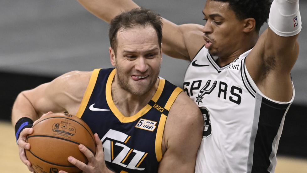 El alero croata Bojan Bogdanovic anotó 28 puntos como líder del ataque de los Jazz de Utah, quienes lograron 21 triples, su mejor marca de la temporada, con los que este domingo arrollaron como visitantes a los Spurs de San Antonio por 109-130.