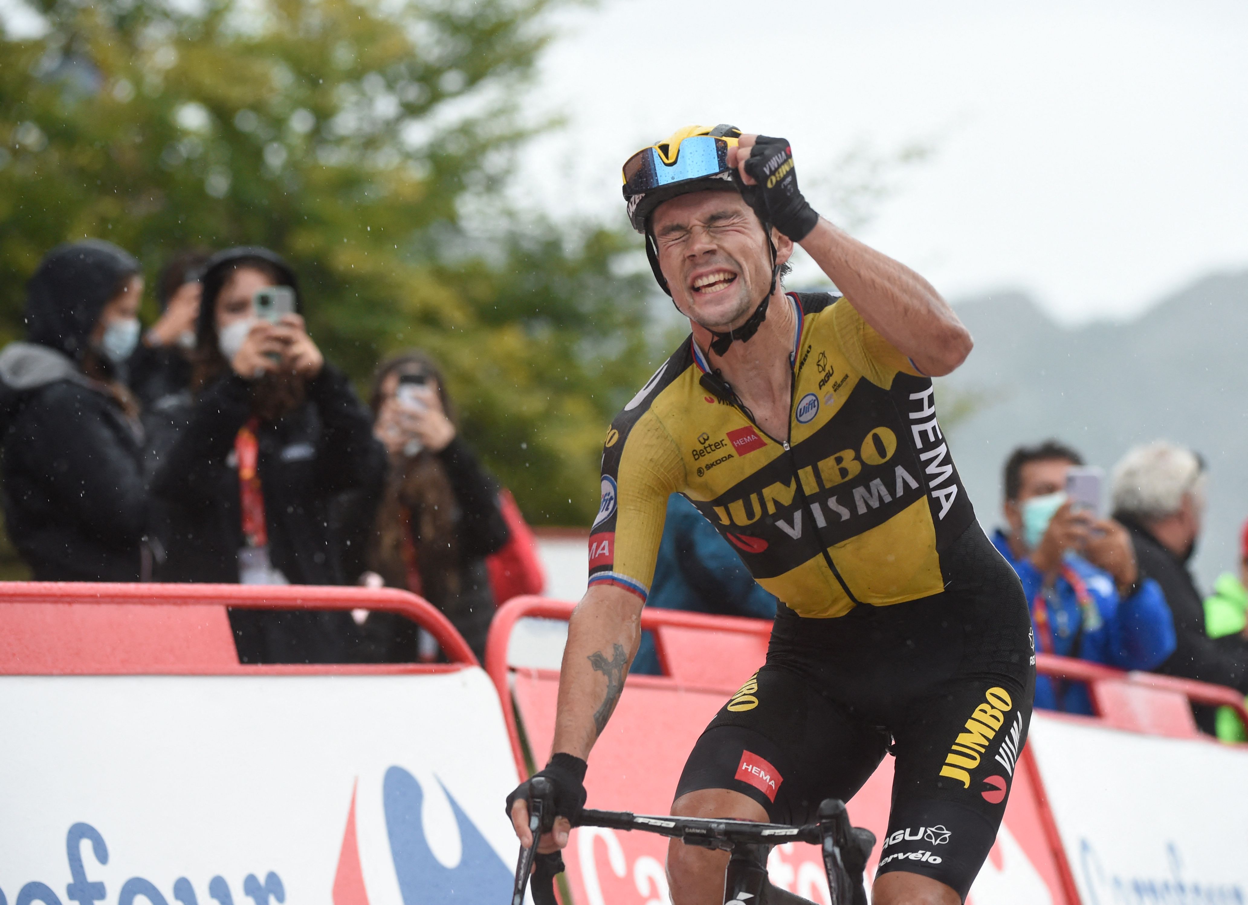 Y Superman López, que intenta alcanzarlos y no lo consigue, rezonga, “¿para qué seguirle a Egan?”, dice. “Si ya sabía que no iba a llegar”. En Lagos, dicen los asturianos, la niebla no baja sobre la montaña sino que sube de arriba abajo, como asciende la gran pareja, que no se deja envolver en gris, y, más de un minuto detrás, nunca mucho más, los que persiguen, Enric Mas y Superman y los bahrain de Poels, Haig y Mäder, y Adam Yates y Kuss… Egan revienta, y no Roglic, como temían los agoreros, y sonríe Fanlo Fuente, y dice, “el que anda, anda”. Lo exclama cuando, llegando a la Huesera, la parte más dura, el esloveno esprinta, el culo elevado sobre el sillín en la medida justa, y Egan se sienta. Al último tramo duro de Lagos le llaman el Mirador de la Reina, pero es al revés, es donde mejor se ve al rey de la Vuelta, al Roglic enloquecido, enfebrecido. “Mi mejor show en la Vuelta, qué divertido”, exclama en la meta, donde mejor le ven volando los que persiguen, le vislumbran y se someten. Llegan a 1m 35s. Egan con ellos, alcanzado tras una serie de ataques entre todos. Mas se activa. En la general, el mallorquín, el segundo, está a 2m 22s, y a llegar se toca todos los huesos y comprueba que está vivo. Respira. A la Vuelta, tan resuelta, le quedan cuatro días. Landa, que no llegó a Lagos, no la terminará.