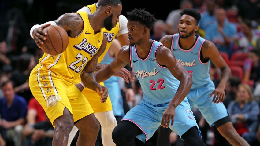 Anthony Davis anotó 33 puntos, LeBron James 28, que se quedó a un rebote para un triple-doble, y los Lakers de Los Ángeles defendieron su ventaja para doblegar el viernes 113-110 al Heat de Miami.James logró además 12 asistencias y nueve tableros, y Davis capturó 10 rebotes para los Lakers. Los Ángeles tiene ahora foja de 23-3, amplió su racha victoriosa de visitante a 13 partidos, la segunda más larga en la historia del equipo, y remontó por octava ocasión esta campaña una desventaja de dos dígitos.Los Lakers asestaron a Miami su primer descalabro en casa en la temporada tras un inicio de 11-0.Jimmy Butler encabezó la ofensiva de Miami con 23 tantos, seguido de Derrick Jones Jr. con 17, Kendrick Nunn 16 y Kelly Olynyk 15. Bam Adebayo logró 12 unidades y 12 tableros. Anthony Davis anotó 33 puntos, LeBron James 28, que se quedó a un rebote para un triple-doble