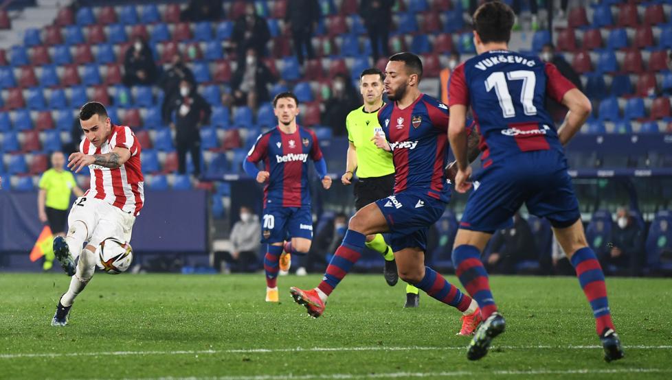 En el Villamarín, tras encajar cerca del final y empatar a un suspiro del final, la clasificación llegó vía tanda de penaltis. Tanto Unai Simón como los leones elegidos para lanzar las penas máximas lo bordaron ante los verdiblancos. El pase en el Ciutat de Valencia sí necesitó de prórroga, pero no de penaltis. El gol de Berenguer en el minuto 112, previo rebote del balón en el cuerpo de Vukcevic, sirvió para meterse en una nueva final de Copa, la segunda consecutiva.