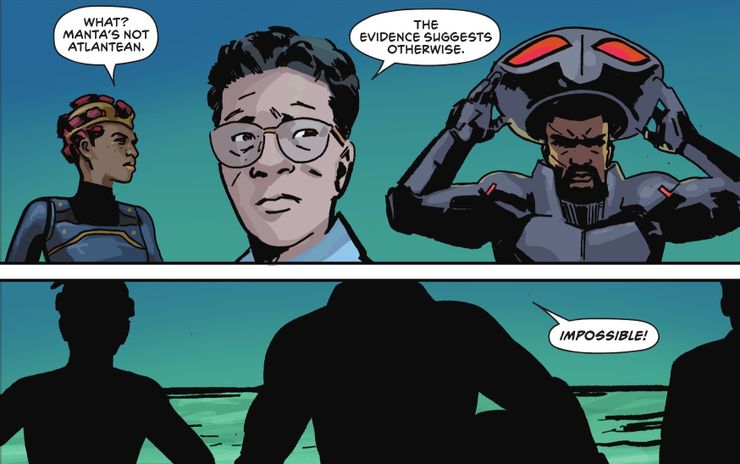Después de estar expuesto a un mineral mágico que afecta solo a los Atlantes, Black Manta descubre la verdad de su herencia en Manta negra # 2, de Chuck Brown, Valentine De Landro, Marissa Louise y Clayton Cowles. No hace falta decir que no le gusta lo que escucha y se embarca en una búsqueda para aprender más sobre su pasado, que actualmente se desarrolla en el Manta negra mini series. El viaje de Black Manta lo ha llevado de regreso a la antigua Atlántida, donde aprenderá secretos que lo impactarán no solo a él, sino a Aquaman y al resto del Universo DC.