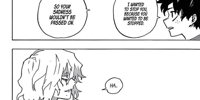 Toga fue aceptada por lo que era, y Ochako le hizo saber que su Don y su forma especial de amar a alguien no la convertían en un monstruo. A Himiko se le concedió el amor que sus padres y compañeros de clase le negaron cuando era niña. Por último, Dabi se sintió visto por su familia por primera vez en su vida. Si bien no perdonó a Endeavor, lo cual es comprensible debido a su terrible crianza, escuchó a su padre disculparse por el daño que causó. Los miembros de la Liga de Villanos pueden haber sido derrotados, pero su caída también condujo a su salvación.