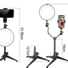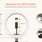 Provisto de un ángulo de rotación de 360º, característica habitual en accesorios de este tipo, este aro de luz con trípode presenta un diseño ligeramente diferente a otras propuestas como la de Yoozon. De este trípode, que alcanza una altura próxima a los 200 milímetros, sobresalen dos brazos: uno de ellos soporta el teléfono móvil utilizado y en el otro se coloca el anillo que tiene un tamaño inferior al de su oponente: en este caso, son 6 pulgadas. Esta reducción no penaliza el rendimiento ofrecido, pues la iluminación que aporta es buena.