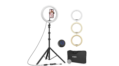 Cualquiera de ellos resulta una opción perfecta, pero hay uno que destaca sobre el resto. Se trata del aro de luz LED Wonew ZJ01. Consigue desmarcarse gracias a sus materiales, acabados y los resultados que ofrecen sus configuraciones de color. Además, viene en una práctica bolsa para guardarlo.