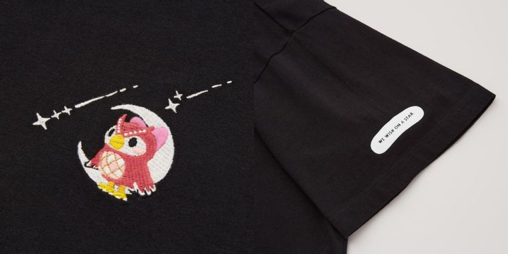 Uno de los elementos más sutiles de la colección, esta túnica de manga corta solo presenta un pequeño diseño en el pecho, así como una cadena de palabras en una manga. El enfoque del diseño es Celeste, la hermana de Blathers, que visita las islas de los jugadores cuando las estrellas fugaces salen para proporcionar recetas de bricolaje con temas de astrología. En referencia a esto, la túnica UNIQLO presenta estrellas fugaces junto a Celeste.