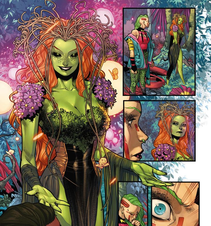 Poison Ivy fue experimentado por Simon Saint y apareció por primera vez en su forma de Queen Ivy en La cosa del pantano # 3. Ella se dividió físicamente en dos, con aspectos importantes de su personalidad separados. Cuando fusionó sus mitades una vez más, renació con una nueva apariencia, pero su atuendo de Queen Ivy es definitivamente el mejor de los dos. Es regio, orgánico y absolutamente hermoso. Fluye maravillosamente y más que merece un lugar en la lista. Poison Ivy es una experta en incorporar flores en su guardarropa, y en ningún lugar es más evidente que aquí.