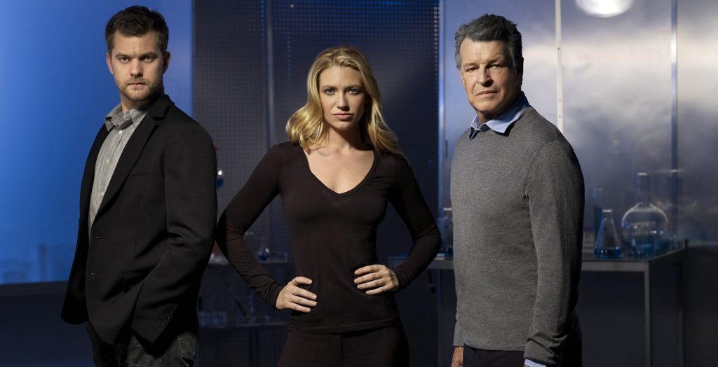 Creado por J.J. Abrams, Alex Kurtzman y Roberto Orci, Franja comenzó a transmitirse en FOX el 9 de septiembre de 2008. Protagonizada por Anna Torv, John Noble y Joshua Jackson como el agente especial del FBI Olivia Dunham, el Dr. Walter Bishop y Peter Bishop, respectivamente, el programa siguió las investigaciones de una fuerza de tareas especial apoyada principalmente Por el FBI, la División Fringe.