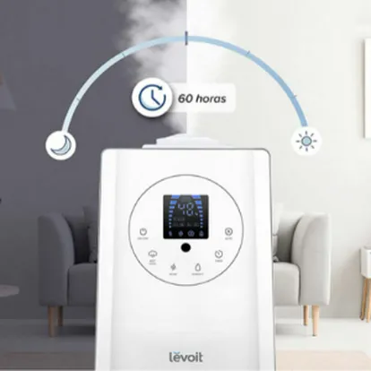 Se puede configurar su tiempo de uso gracias a su temporizador de hasta 12 horas además de poder seleccionar su modo auto, que controla el nivel de la niebla automáticamente y se apaga y se enciende automáticamente tanto cuando llega a nivel establecido como cuando vuelve a uno incorrecto. Destaca su pantalla LED de fácil lectura con botones de control táctiles y sus luces nocturnas apagables.