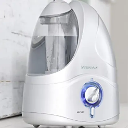 Purifica el aire del dormitorio, de la sala de estar y de las habitaciones infantiles con este humidificador ultrasónico de Medisan que convierte el agua fría en niebla con vibraciones, aumentando la humedad del aire con una tecnología silenciosa y de bajo consumo.