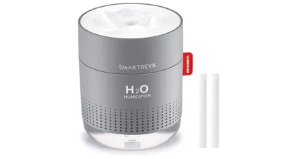 Se trata de un humidificador con una capacidad de seis litros y una autonomía de hasta 40 horas con solo una carga. Lleva incorporada tecnología ultrasónica, que permite que el humidificador produzca una niebla fina, seleccionando entre modo vapor caliente o frío en función de las necesidades. Tiene un diseño de boquilla giratoria hasta 360 grados para elegir el ángulo de vaporización y cuenta con un compartimento para añadir almohadillas aromáticas (tres incluidas), dirigiendo el ángulo de vaporización de forma personalizada