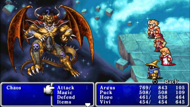 El reclamo de Chaos a la fama es ser el jefe final del primer Fantasía Final juego, y su forma remasterizada se considera el mejor jefe en Extraño del paraíso. No es especialmente duro, pero tiene un ataque de muerte instantánea y una increíble resistencia contra la magia, por lo que los jugadores no deben ir sin preparación.