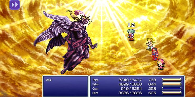 fantasía final 6‘s Kefka es uno de los mejores jefes finales de la franquicia, a menudo considerado más interesante Fantasía Final villano que FF7Es Sephiroth, y es uno de los más desafiantes. Los críticos aún lo consideran uno de los mayores villanos en la historia de los videojuegos, y con razón. Sus ataques son ridículamente fuertes, su sprite, su música y su escenario son asombrosos, y su personalidad caótica, parecida al Joker, es entretenida y verdaderamente icónica. También comienza cada pelea reduciendo a cada miembro del grupo a 1 HP con su ataque Heartless Angel, lo que hace que los jugadores entren en pánico desde el primer turno. La única razón por la que está atrapado en el cuarto lugar es que los jugadores pueden utilizar tácticas baratas para destruirlo rápidamente y, aunque aún se requiere un poco de suerte, tiene algunas debilidades muy convenientes.