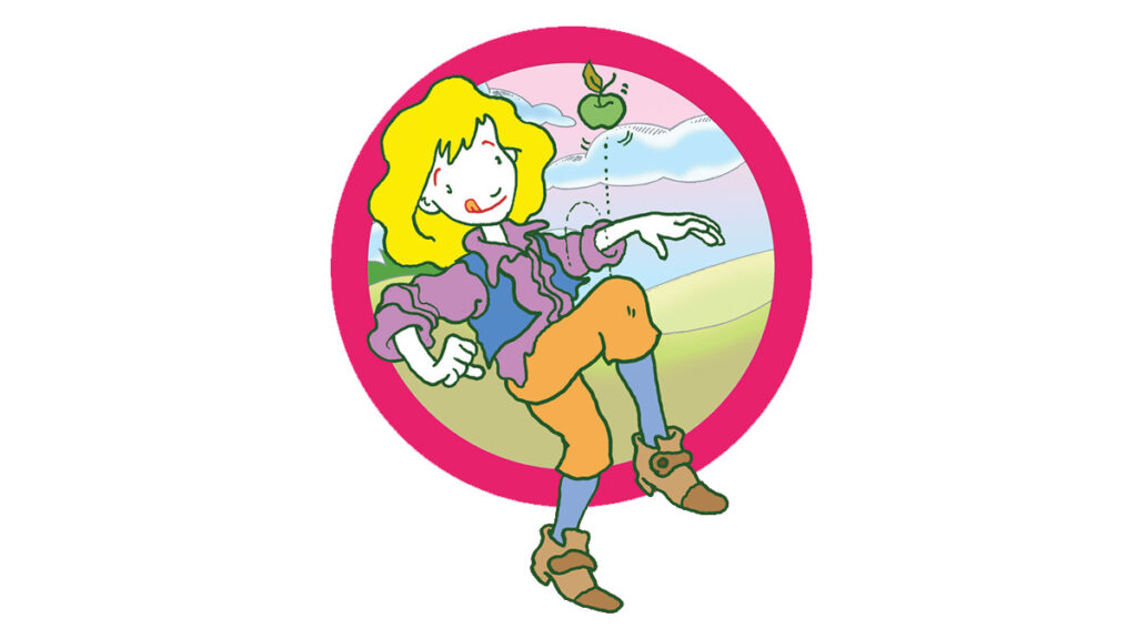 El bueno de Isaac a veces tenía muy malas pulgas. Así que una tarde, cuando disfrutaba de la siesta tumbado a la bartola y le cayó una manzana en toda la cabeza, muchos se temieron que saliera corriendo a por un hacha para talar el árbol. Pero como también era el hombre más listo de la tierra sacó algo mucho mejor del chichón: el secreto que daba cuerda a todos los astros del firmamento.