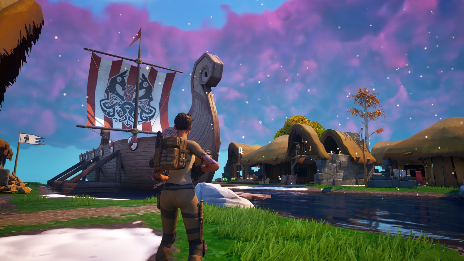 Un hito menos conocido, el Pueblo vikingo se puede encontrar entre Snobby Shores, Tilted Towers y Greasy Grove: todos puntos de interés populares que atraen a la mayor parte de los jugadores en la mayoría de los partidos. La Aldea Vikinga no está marcada en los mapas de los jugadores, por lo que es menos probable que atraiga mucha atención. Es un lugar más pequeño, con edificios con temática vikinga y una lancha que desafortunadamente no va a ninguna parte rápidamente.