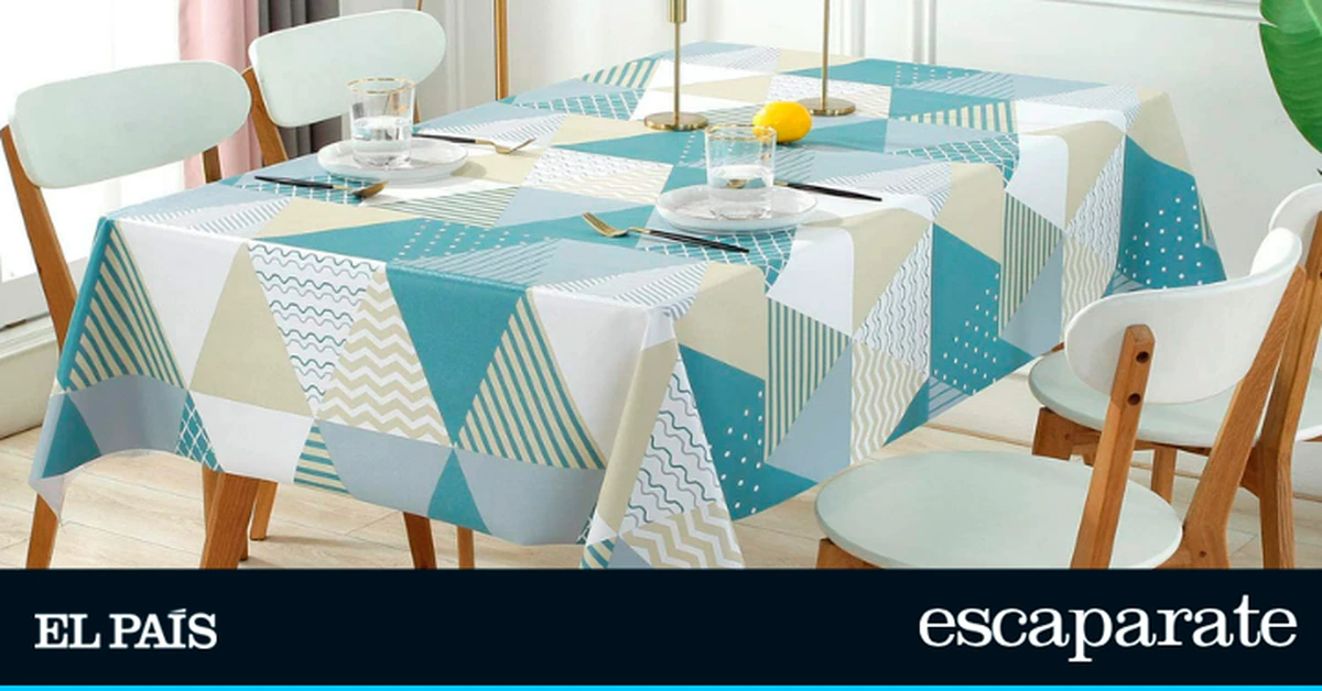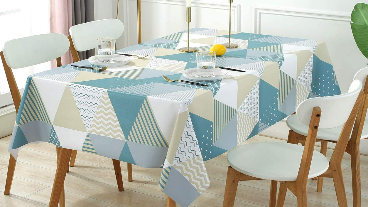 Destaca el diseño y estampado de este mantel antimanchas, que además de proteger la mesa del hogar también le aporta estilismo y un toque llamativo en términos de decoración, ya que cuenta con diferentes formas geométricas en una gama de colores neutrales que combinan los tonos marrones con los azules.