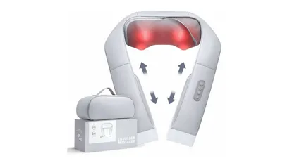 Este masajeador para espalda, cuello y cervicales ofrece tres niveles ajustables y una función de calor. También se puede elegir la dirección de rotación de sus cabezales de masaje e incluso aumentar la longitud de los brazos de su estructura.