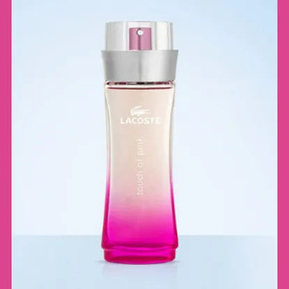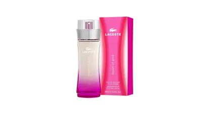 Lacoste Touch of Pink es un soplo de libertad que combina diferentes esencias frescas y delicadas en un frasco de 90 mililitros, semitransparente y con tonos rosados. La fragancia combina hojas de cilantro, semillas de cardamomo, jazmín, hojas de violeta, sándalo, almizcle y vainilla.