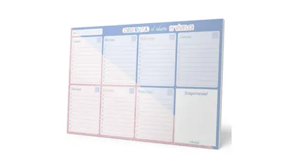 Planificador semanal con un tamaño A4 ideal para anotar todo lo que se necesita recordar y las tareas a realizar día a día, como la lista de la compra, eventos importantes, exámenes o reuniones laborales.
