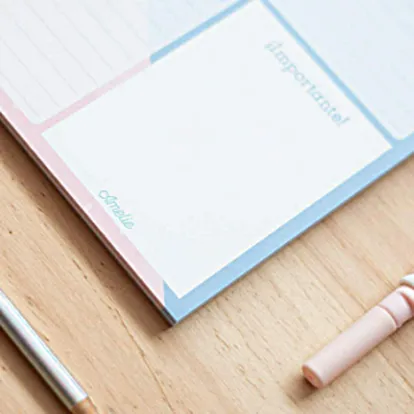 Se trata de una opción muy práctica y cómoda, ya que tiene un diseño de bloc que permite separar y arrancar sus hojas fácilmente una vez usadas. Además, se puede personalizar la fecha, los horarios y cuenta con un gran espacio de escritura incluyendo un espacio para las anotaciones más importantes.