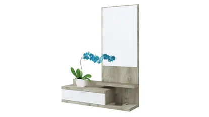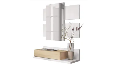Este mueble recibidor para la entrada tiene unas medidas de 116 x 81 x 29 centímetros y va acompañado de un espejo, con unas dimensiones de 70 x 40 x 0,3 centímetros.