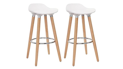 La opción perfecta si se quiere decorar la cocina con un toque minimalista y un estilo nórdico. Este producto incluye dos taburetes altos que se caracterizan por un asiento blanco y cuatro patas de madera de haya, que garantizan una vida útil larga. Además, tiene un reposapiés de lazo a una altura media y sus patas llevan incorporadas en la parte inferior tornillos y plástico, para evitar los rayones en el suelo y las caídas.