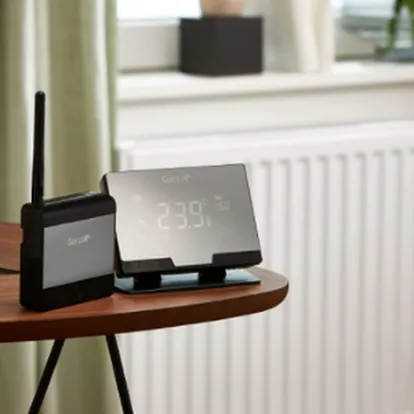 Se trata de un termostato inalámbrico e inteligente para controlar a distancia tanto la caldera como la calefacción y funciona con cuatro pilas AAA o a través de un cable enchufado a la corriente, en función de las necesidades. Su instalación puede llevarse a cabo en la pared o sobre una superficie, para poder cambiarlo de lugar fácilmente.