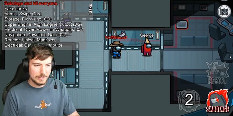 MrBeast y Sapnap fueron los primeros en tomar los responsabilidad de un impostor en Entre nosotros durante la primera ronda. La ronda se calentó a medida que la tripulación completaba las tareas mientras buscaban impostores. Sapnap consiguió su primera muerte, pero finalmente fue atrapado por Georgenotfound. Sin embargo, MrBeast finalmente ganó la ronda para el impostor al eliminar a Georgenotfound sin ser descubierto por los otros jugadores supervivientes. MrBeast fue nuevamente asignado como impostor junto con Chris en la última ronda. Aunque Chris fue el primero en ser atrapado, MrBeast sobrevivió engañando a otros compañeros de tripulación y ganando la última ronda una vez más. El ingenio de MrBeast y sus amigos ciertamente se puso a prueba en este juego, pero MrBeast fue lo suficientemente inteligente como para burlarlos a todos.