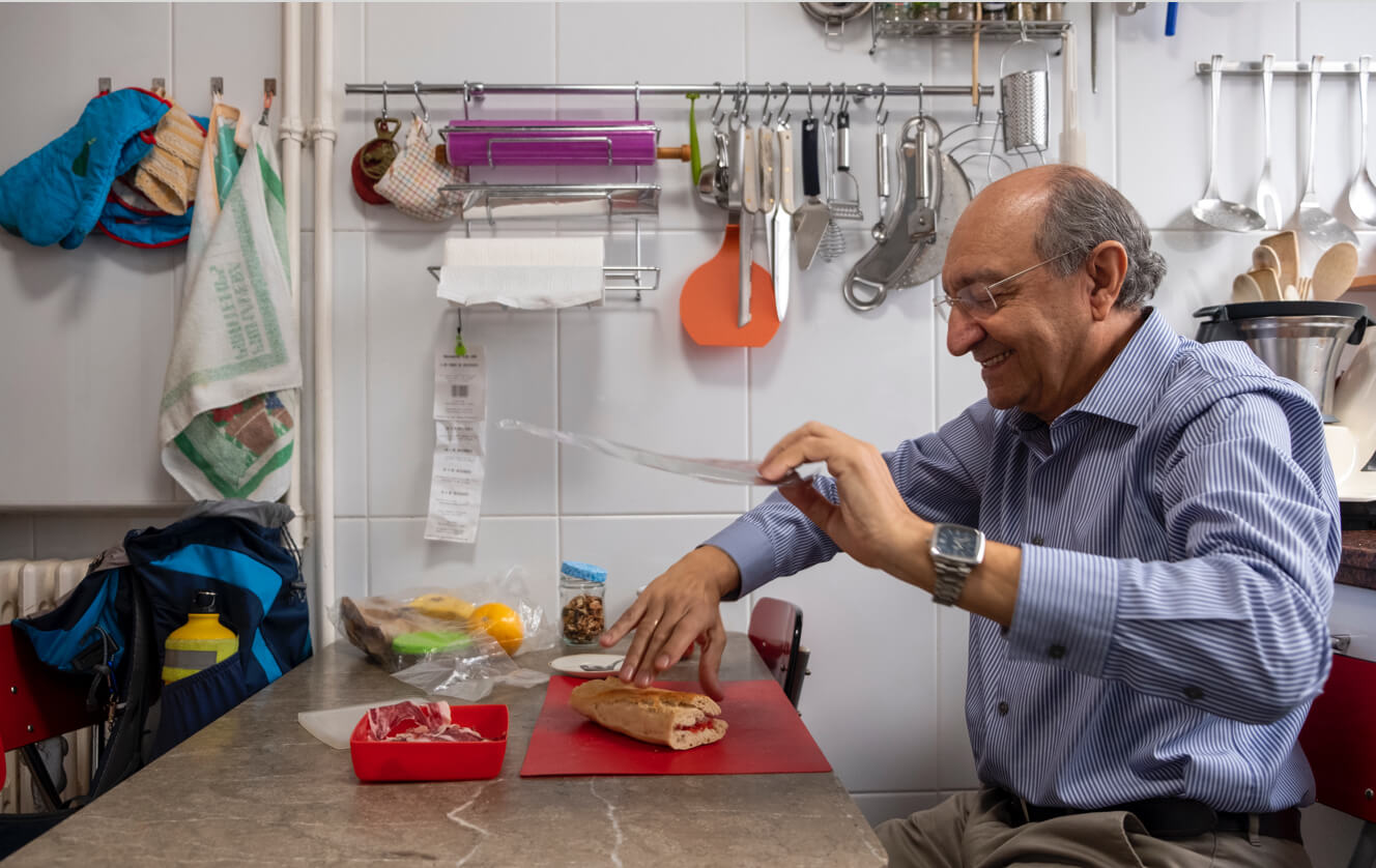 Enrique ejerció como profesor de educación física, pero casi toda su vida se dedicó a labores de dirección. Poco ejercicio y escaso control en las comidas, muchas de ellas fuera de casa, le condujeron a la enfermedad. No presentaba secuelas, pero el estrés, el sobrepeso y el descontrol de horarios minaban su salud: sudoraciones, cansancio, problemas de sueño… Con precisión profesoral califica su salud antes del diagnóstico con un cuatro, y 16 años después asegura que “la nota sería un ocho porque incluso me han desaparecido las goteras que tenía antes de los 50 años”.