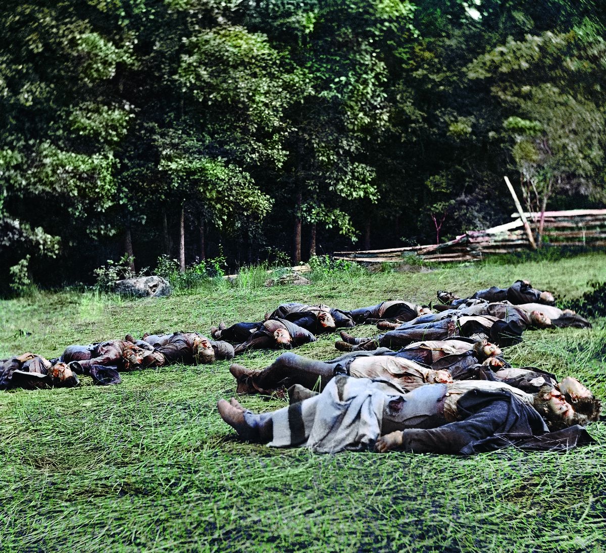 Muchos muertos en este recorrido gráfico por la historia: los del campo de batalla de Gettysburg, ahora tan próximos, los de la Comuna de París numerados en sus ataúdes, el soldado alemán en jirones en una trinchera, los cadáveres de Mussolini y Clara Petacci desfigurados a todo color. Impactante también cómo de peligrosos y actuales se ven los nazis en color. La famosa foto del levantamiento del gueto de Varsovia nos mete en el drama del Holocausto de una manera exactamente inversa a como lo hizo Spielberg en La lista de Schindler.