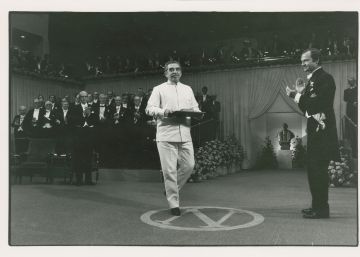 Gabriel García Márquez decía que solía despertarse temprano desde los 17 años para sentarse a llenar las páginas en blanco con las que comenzaba una jornada. Aquella rutina tuvo una feliz variación el 10 de octubre de 1982, cuando alguien de la Academia Sueca lo llamó a su casa de Ciudad de México para anunciarle que había ganado el Premio Nobel de Literatura. Aquel momento quedó inmortalizado. No en una hoja en blanco llena de palabras sino con luz que escribió sobre un papel. La fotografía de aquella madrugada muestra a un orgulloso García Márquez, en ese entonces de 55 años, sonriendo de oreja a oreja en el jardín de su casa. Tiene las manos metidas en su bata y calza unos zapatos blancos. Su esposa, Mercedes Barcha, le planta un fuerte beso en la mejilla izquierda con un gesto que solo puede describirse como de inmensa felicidad.